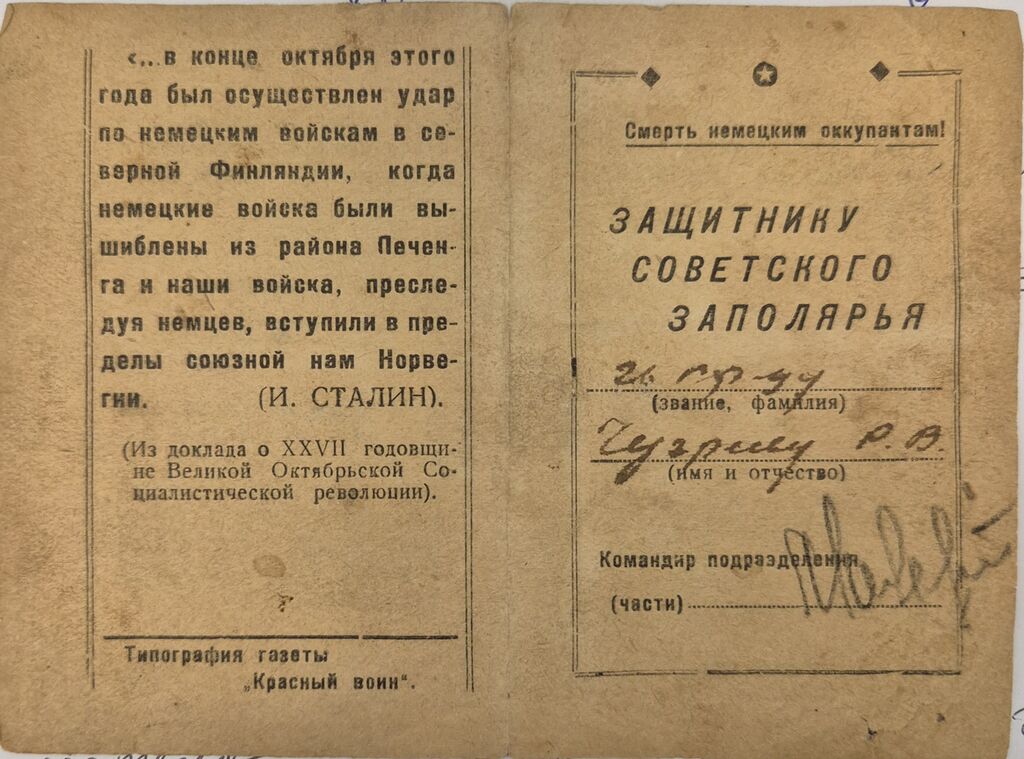 Чугреев Роман васильевич родился 19 июля 1909 года в деревне Зацепинская Тарногского района Вологодской области. До войны работал в колхозе "Красный пахарь". 17 августа 1941 года призван в ряды Красной армии. Война для него началась в Заполярье, где вела бои 14 армия. Роман Васильевич был рядовым 325 стрелкового полка 14 дивизии под командованием командира Короткова. Награжден медалью "За освобождение Советского Заполярья". Изгоняя фашистов с родной земли, прошёл с боями по территории Норвегии, Финляндии.С начала 1945 года воевал в Германии. Закончил войну в звании страшего сержанкта, вблизи города росток в Германии. Демобилизовался 25 октября 1945 года. После войны снова работал в колхозе. Последние десять лет своей жизни жил в хуторе Бакланники Семикаракорского района Ростовской области.